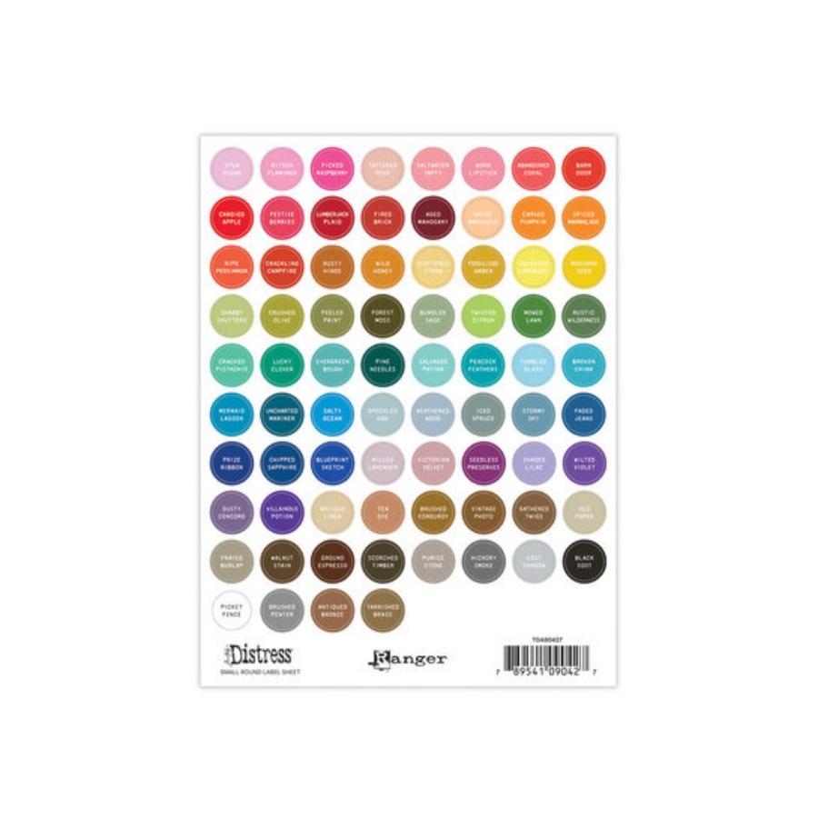 Deze collectie etikettenvellen is gedrukt in het bijpassende kleurenpalet van Distress en bevat de iconische kleurnamen.