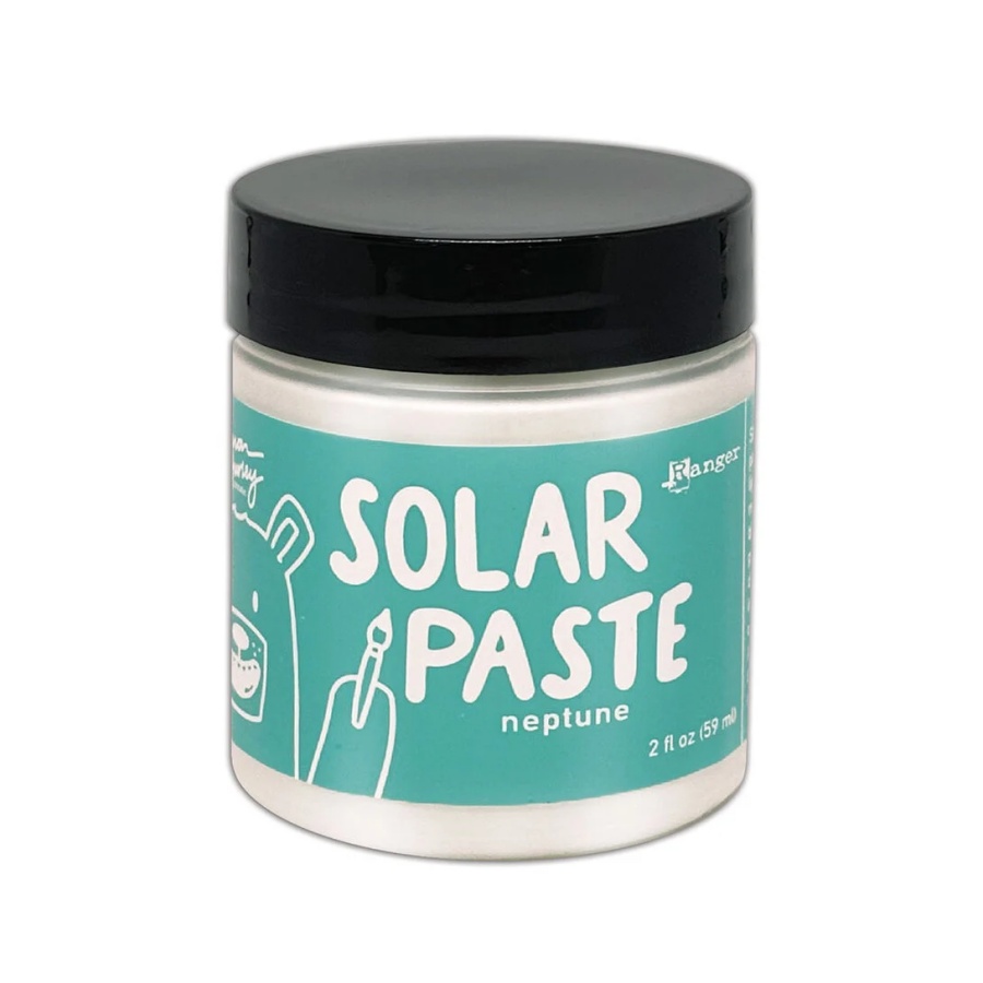 Simon Hurley create. Solar Paste is een romige witte pasta met een metallic kleurverandering wanneer deze in contact komt met licht. De kleur kan subtiel zijn op wit karton, maar onthult een intense glans wanneer het wordt aangebracht op zwart. Tint Solar Paste met Simon Hurley create. Reinkers om gekleurde pasta’s te maken! Je kunt het dezelfde kleur geven als de glans, of verschillende kleuren gebruiken zodat de kleur verandert wanneer het naar het licht wordt gekanteld. Breng Solar Paste aan over inkt om een ​​kleurrijke achtergrond te creëren die van kleur verandert wanneer het naar het licht wordt gekanteld. Breng het aan door een sjabloon met een paletmes voor definitie of breng een dunne laag direct op het oppervlak aan voor een metallic verfachtige afwerking.
